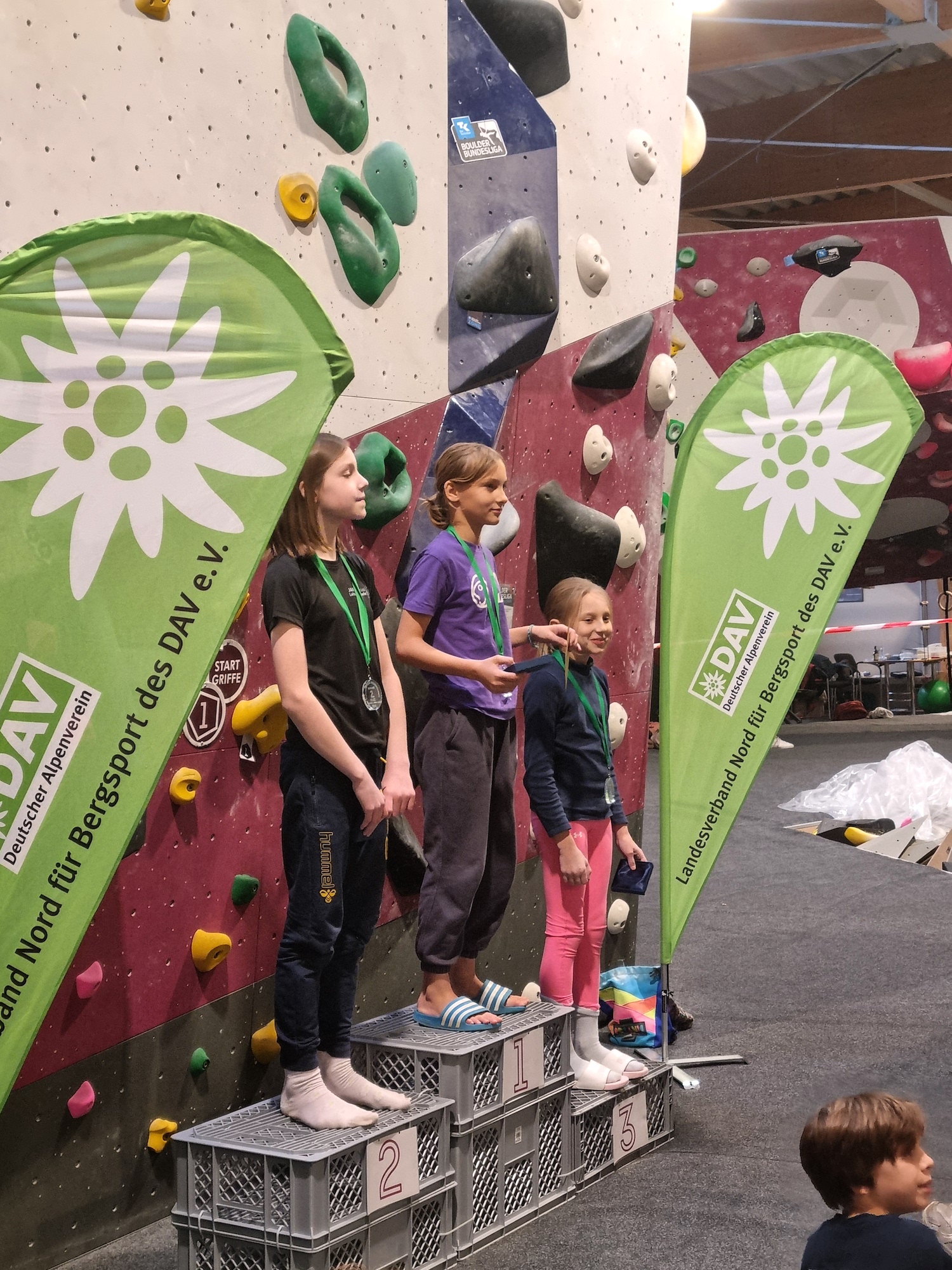 Die Norddeutschen Jugendmeisterschaft Ergebnisse in der Übersicht: Beim Bouldern in der weiblichen Jugend A erreichten Emma Gummert Platz 6 sowie Raika Bauks Platz 14; bei der männlichen Jugend A Maxim Welker Platz 13 und Bela Schätzler Platz 16. In der weiblichen Jugend B Ella Herz Platz 4 und bei der weiblichen Jugend C Miriam Mathees Platz 3 und Karl Harder Platz 2 bei der männlichen Jugend.
