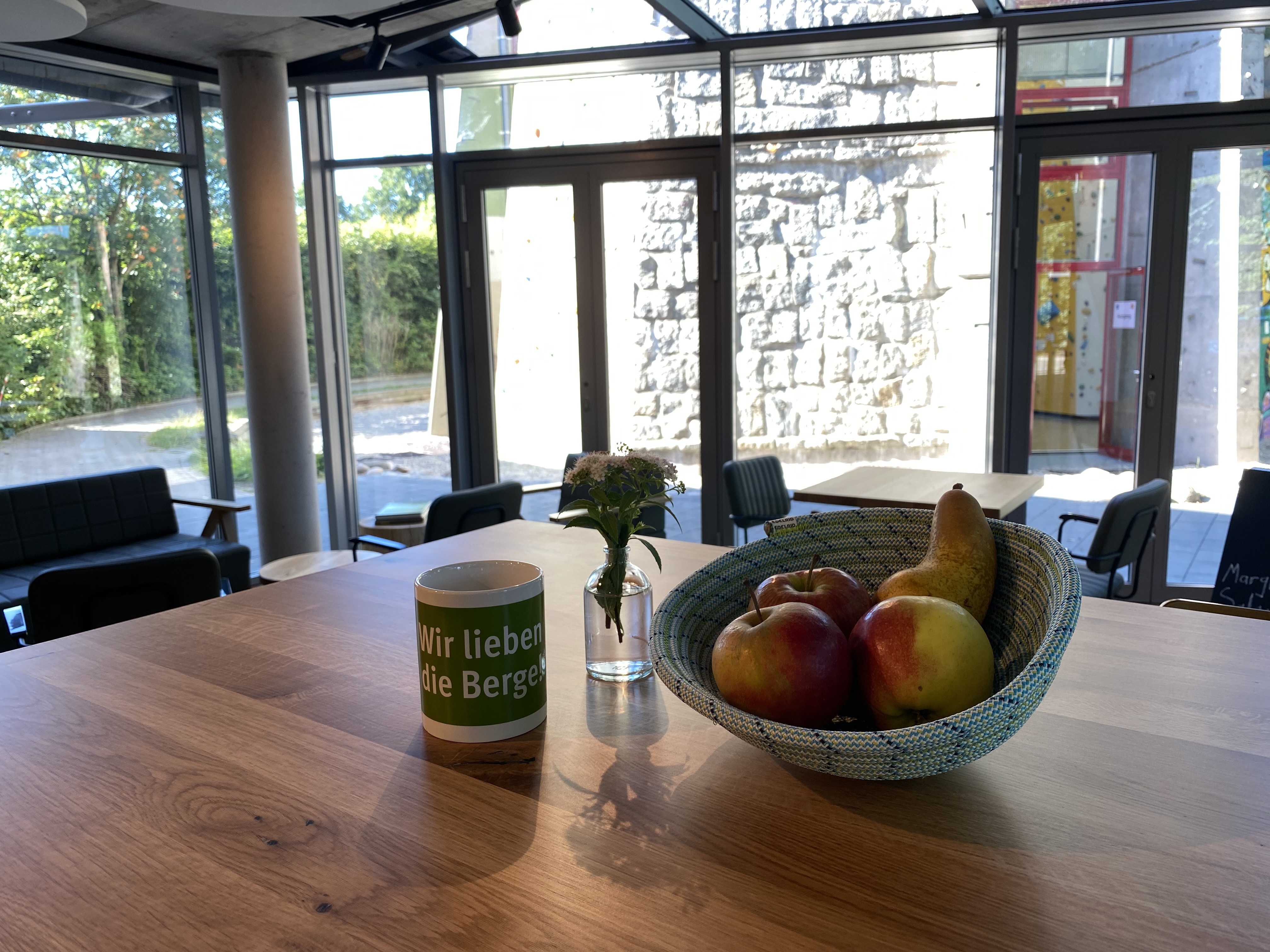 Achtung: die gemütliche "Hüttenatmosphäre" macht es manchmal schwer, dann doch noch an die Wand zu gehen. Der Verkauf von Pizza und Kaffee endet ca. eine halbe Stunde vor Schließung des Kletterzentrums.